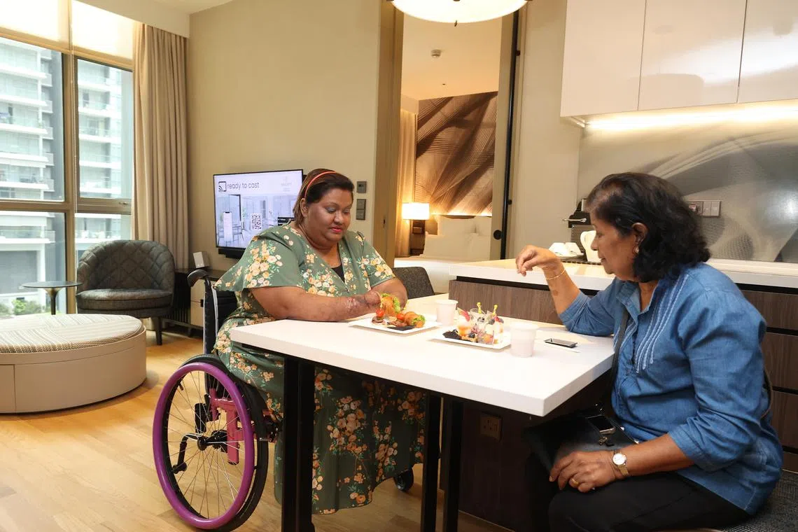 Ms Carole and her mother Sandra Kumari, 74, who is her caregiver, were invited to stay a night at Ascott Orchard on June 6, to share feedback on their overall experience during the stay – especially when it came to accessibility features and service.