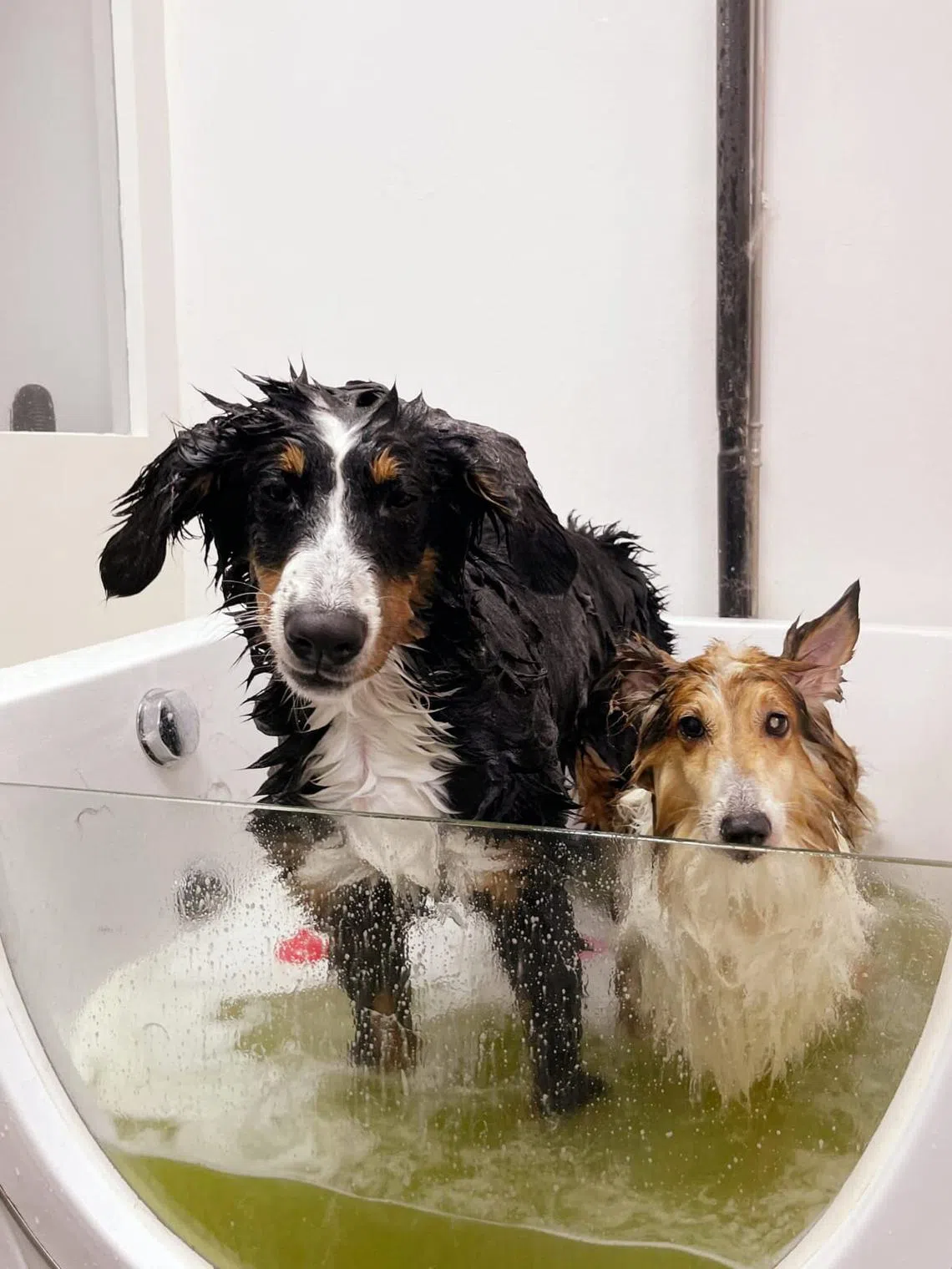 Ms Grace Yoong decided to send her Bernese mountain dog Kaiza (left) and Shetland sheepdog Stinky for a haircut, bath and a spa treatment on March 18.