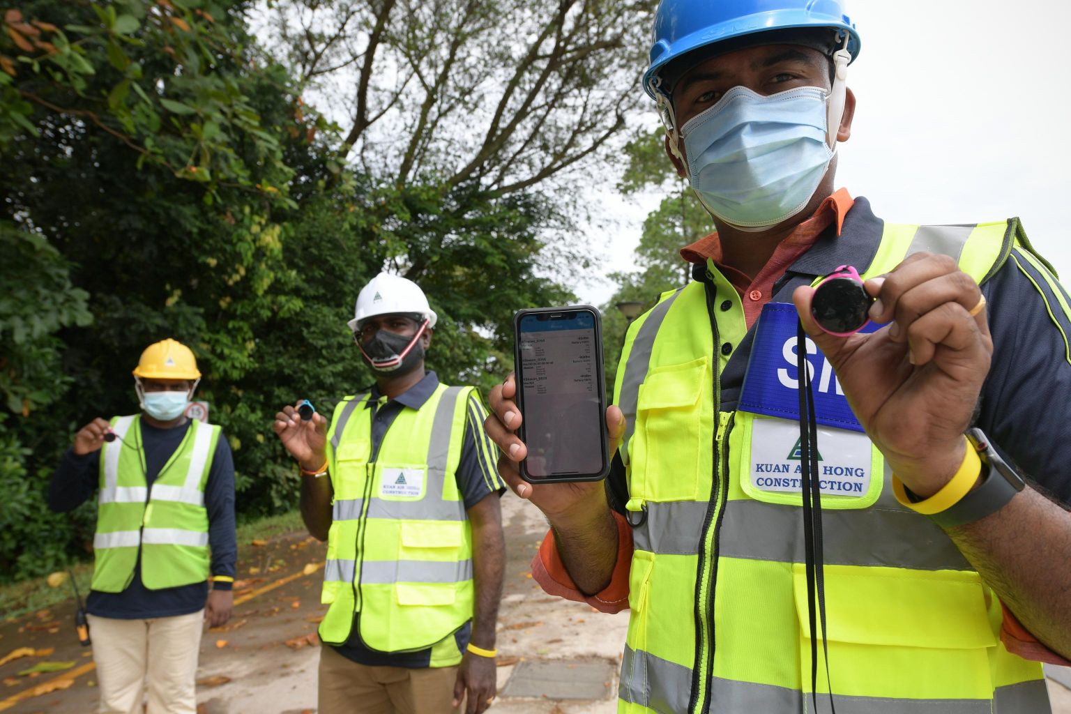 To ensure the safety of its workers, Kuan Aik Hong has implemented measures such as having each worker wear a safe distancing device that beeps when two devices come within a preset distance with each other, such as 1m.