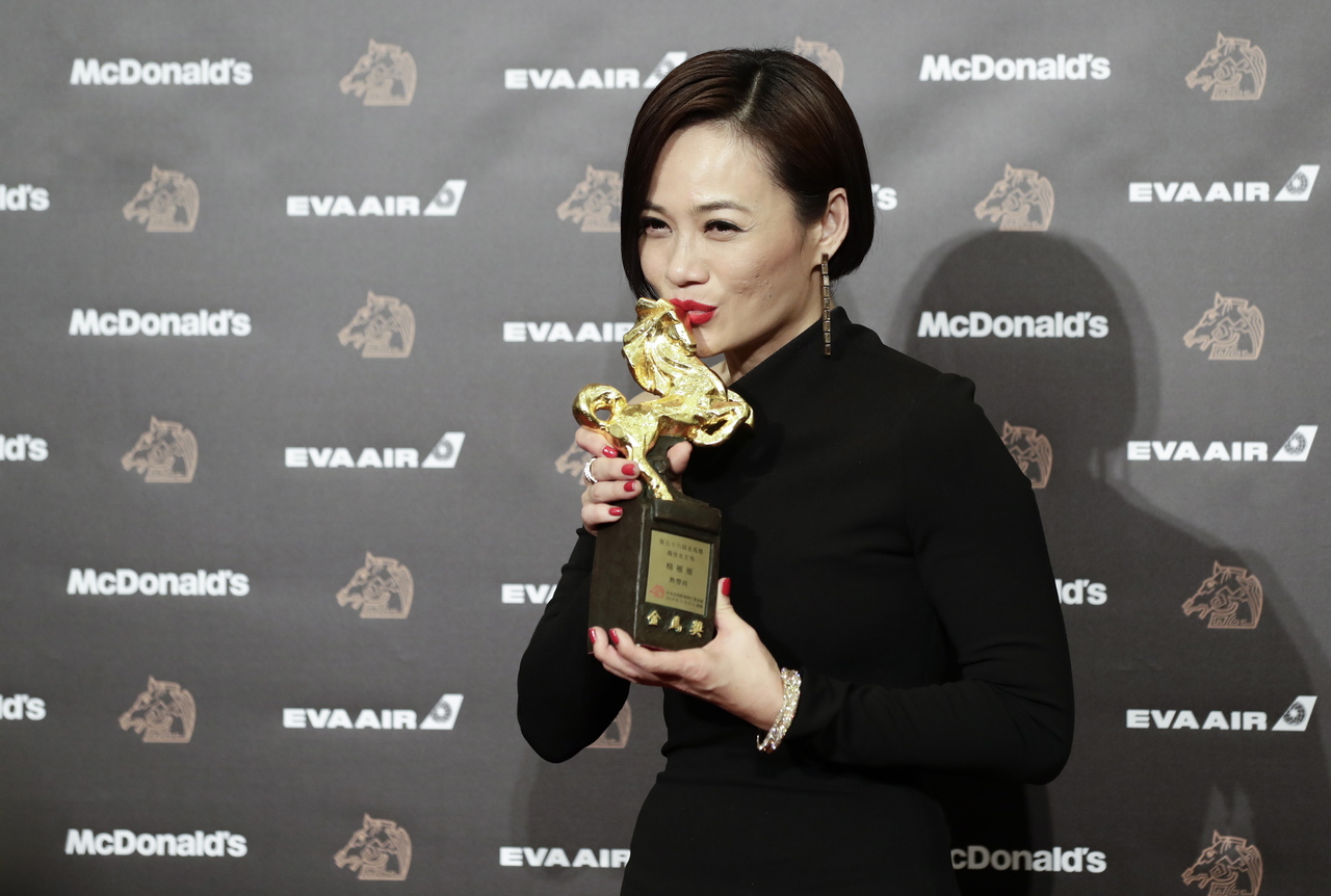 Actress Yeo Yann Yann posing with her trophy after winning the Best Leading Actress award at the 56th Golden Horse Awards ceremony in Taipei on Nov 23, 2019.