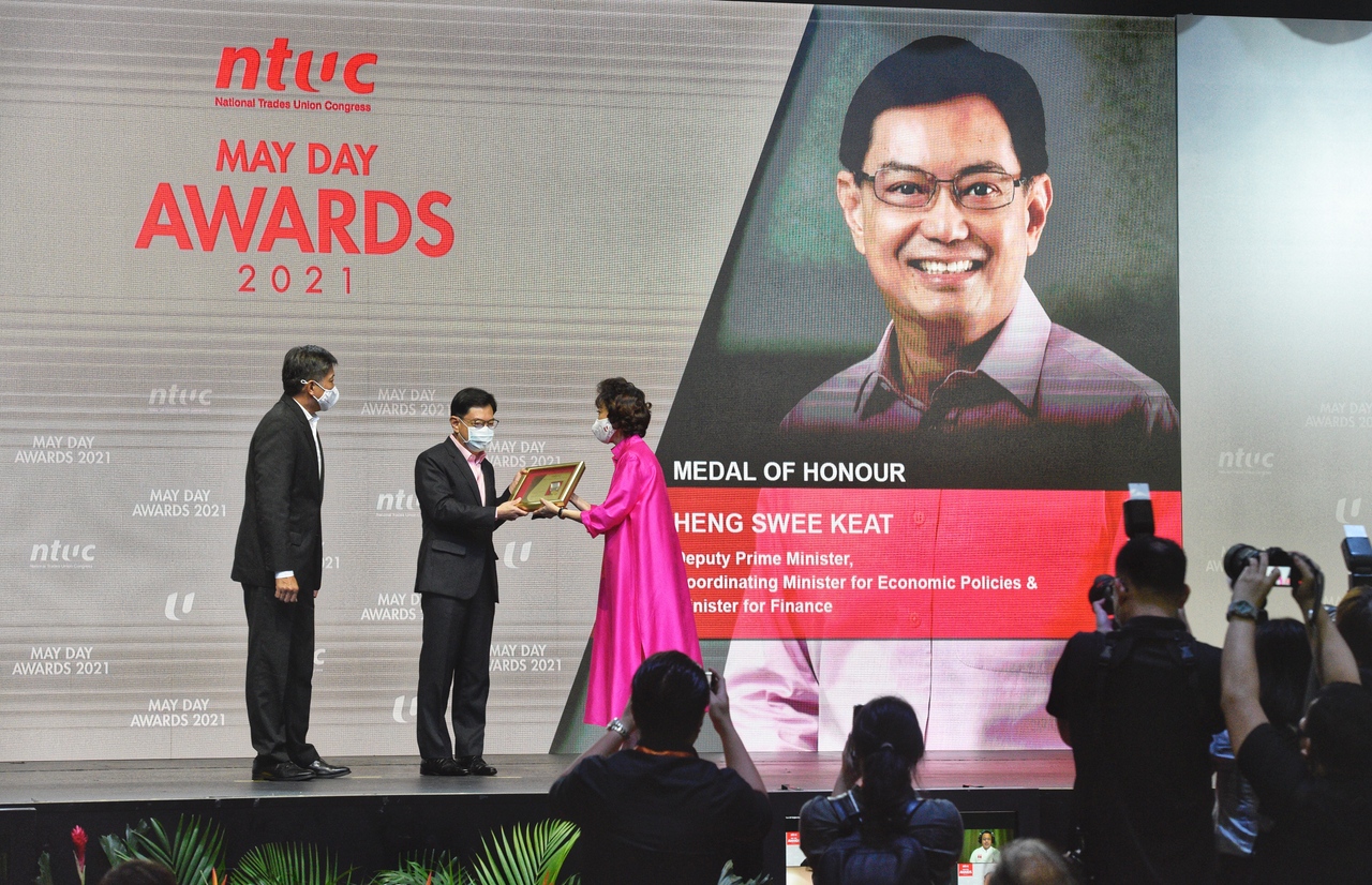 SINGAPORE - Deputy Prime Minister Heng Swee Keat received the top May Day accolade this year for his efforts in helping businesses stay afloat and for preserving the livelihoods of workers here amid the Covid-19 pandemic.
