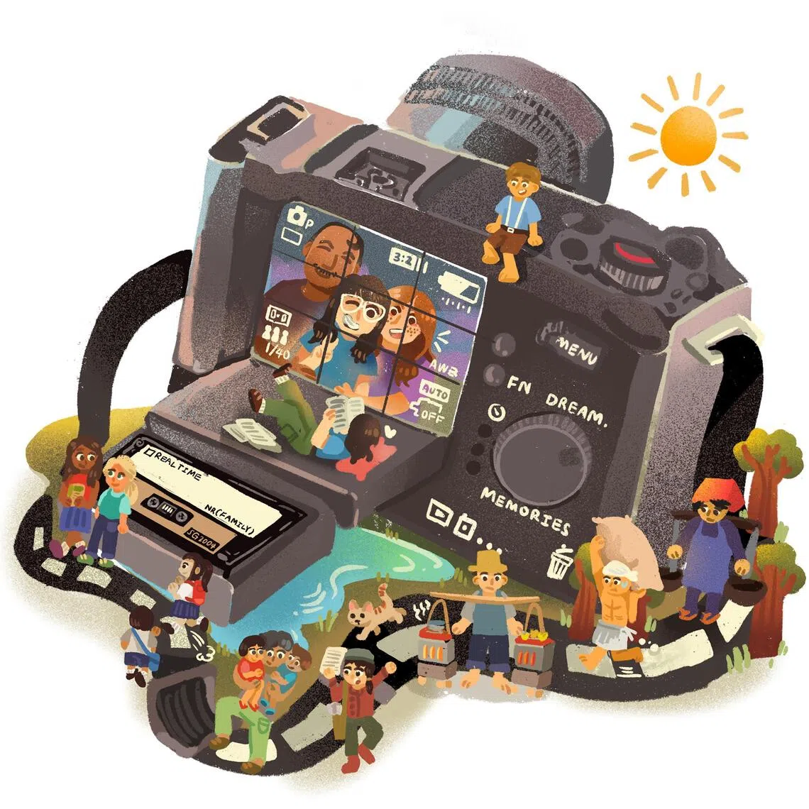 Meanwhile, Nanyang Technological University undergraduate Justina Low’s design features a camera, pictured with multiple generations of Singapore figures like the samsui women and labourers of the 20th century. The 21-year-old is an aspiring artist.