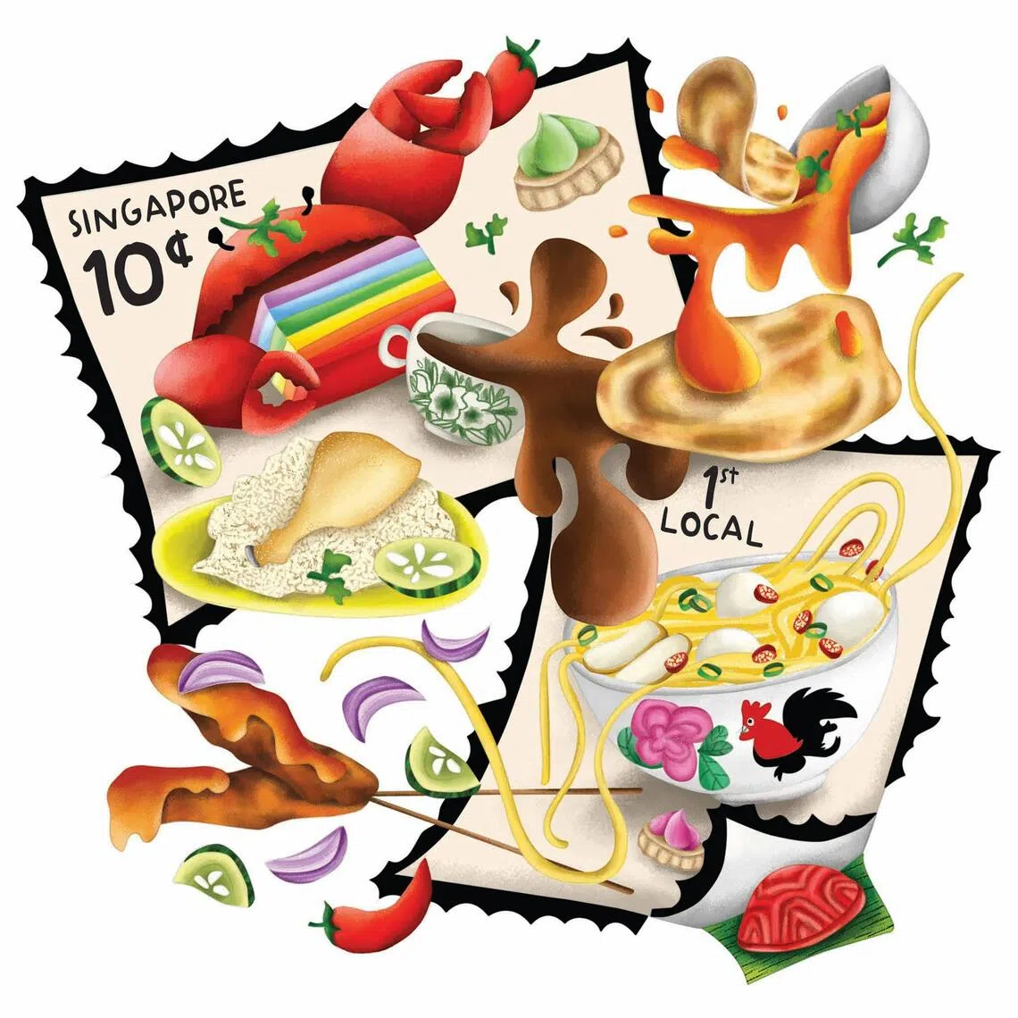 A tiger orchid and elusive leopard cat are drawn into a grid of Singapore’s flora and fauna in a second design by ST executive artist Lee Yu Hui, 31, while ST senior infographics journalist Cel Gulapa, 65, depicts the tapestry of national life. The busy illustration captures the MRT, HDB blocks and a wry mynah bird, among other Singapore tokens.