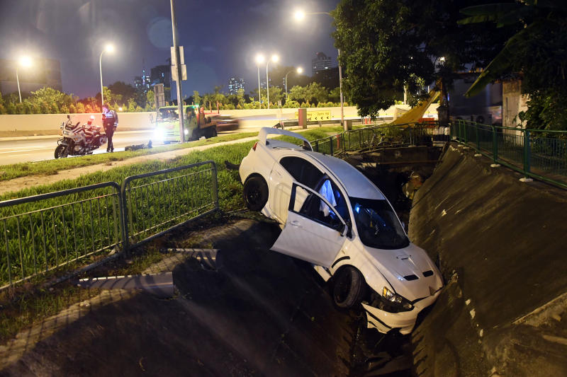 In October, a car fell into a ditch after an accident with another vehicle in Ang Mo Kio.