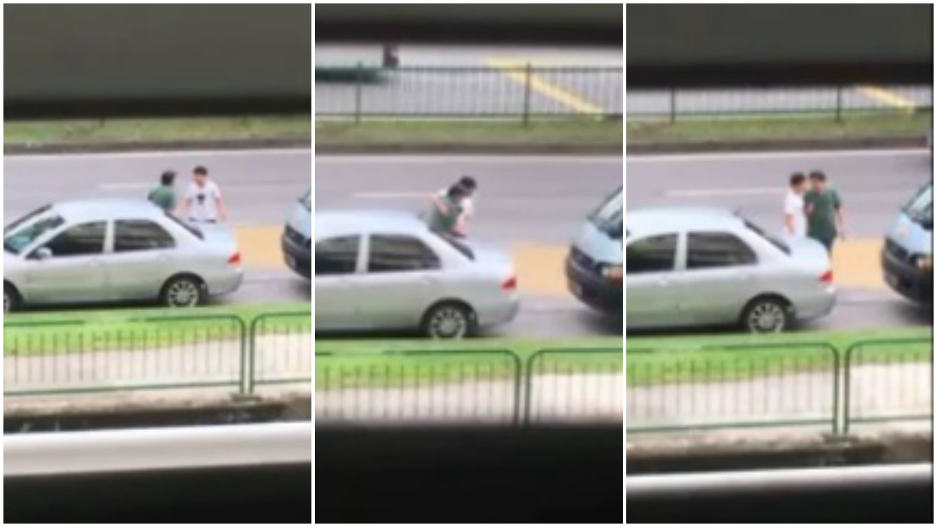 In the footage of the incident sent to Stomp by contributor Jonah, one of the men, who appeared to be middle-aged, was seen shouting at the other younger driver after the collision.