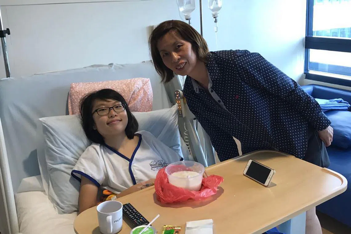Ms Wong Anwen with her mother at KK Women’s and Children’s Hospital in 2017.