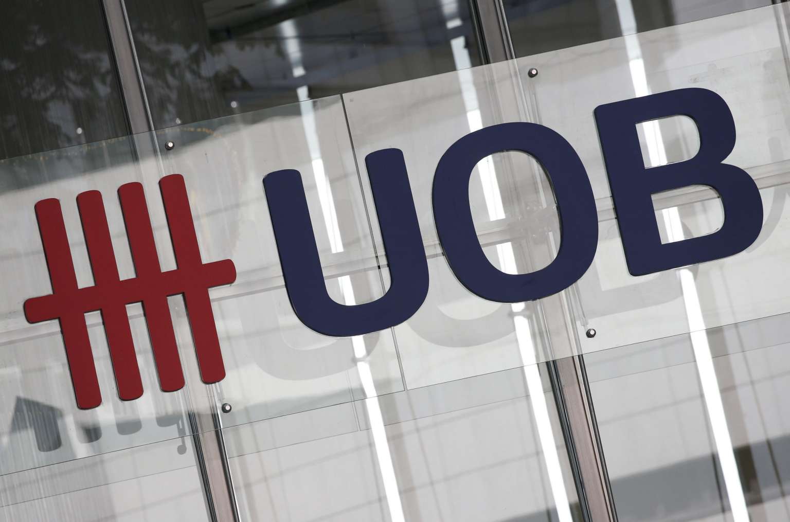 A logo of the United Overseas Bank Limited seen in Singapore's central business district on January 7.