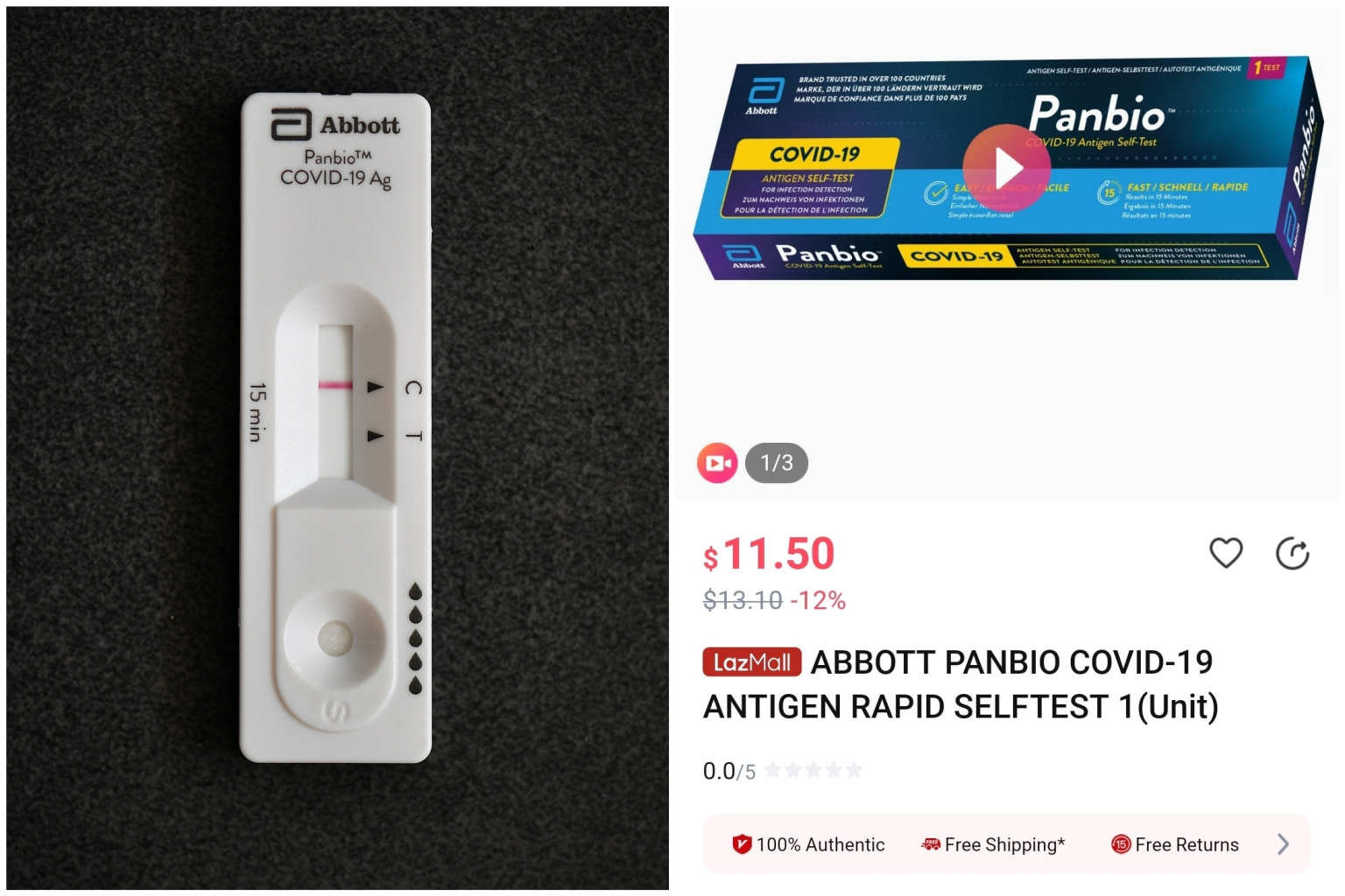 A spokesman for Lazada said: "Both... test kits were made available on Lazada today, on Abbott's LazMall store and Watson's LazMall store.