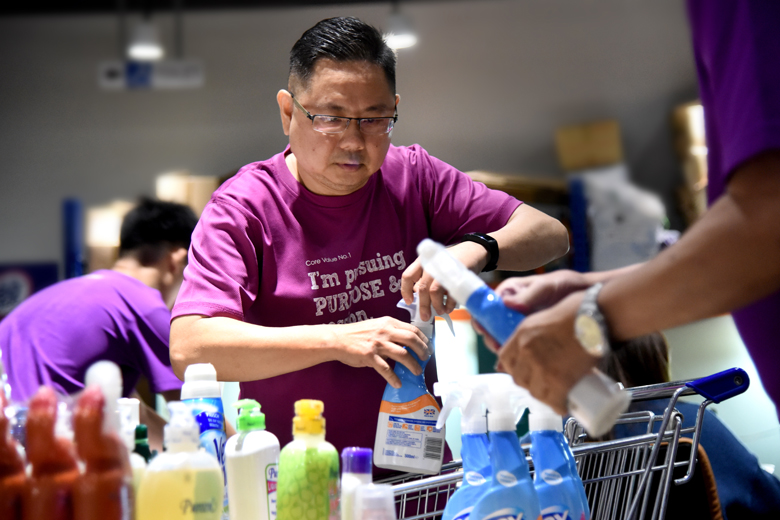 Mr Loo Poh Thye, who works part-time at social enterprise GobblerCo, packing and distributing groceries. A stroke two years ago affected the left side of Mr Loo's body and he underwent two years of rehabilitation.