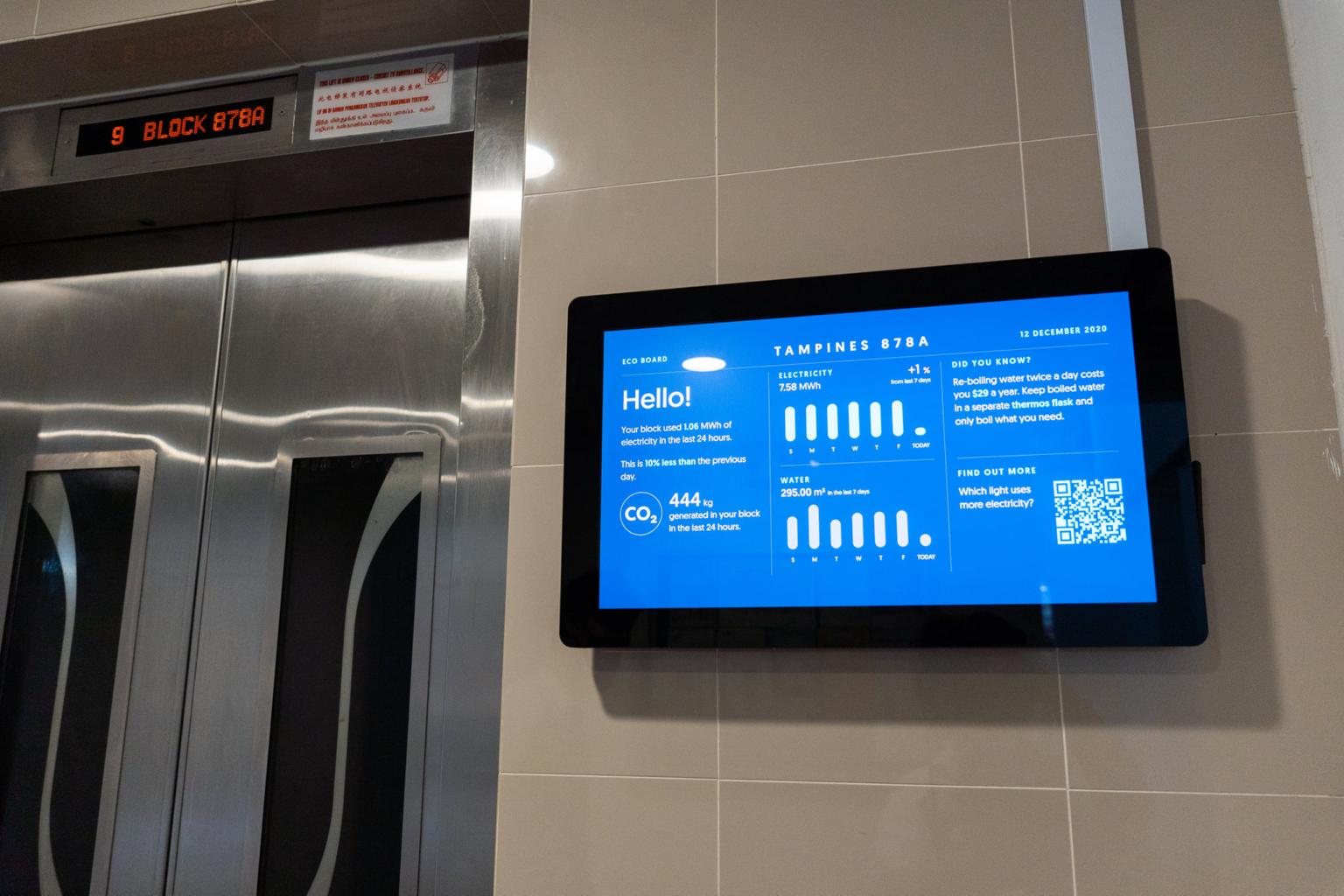 On top of its main aim to change residents' behaviour and nudge them to reduce their consumption, the boards will also help the town council and municipal operators improve estate management efficiency by enabling them to monitor utilities used for common areas.