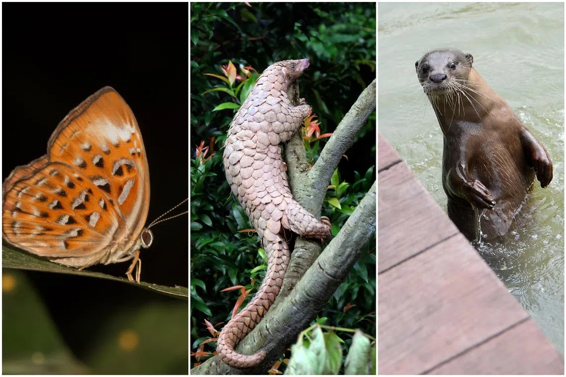 (From left) The harlequin butterfly, the Sunda pangolin and the smooth otter.