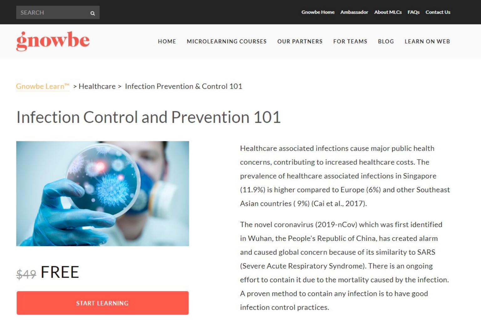 Users can learn about the use of appropriate personal protective equipment and how to perform hand washing, according to the course description on Gnowbe's website.