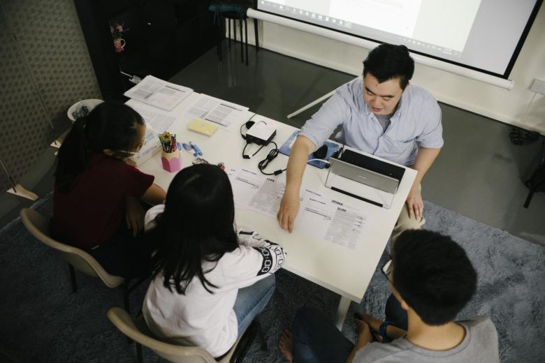 A file photo taken on March 6, 2018, showing a tutor interacting with students. Higher spending on private tuition was a key contributor to an uptick in educational expenses last year.