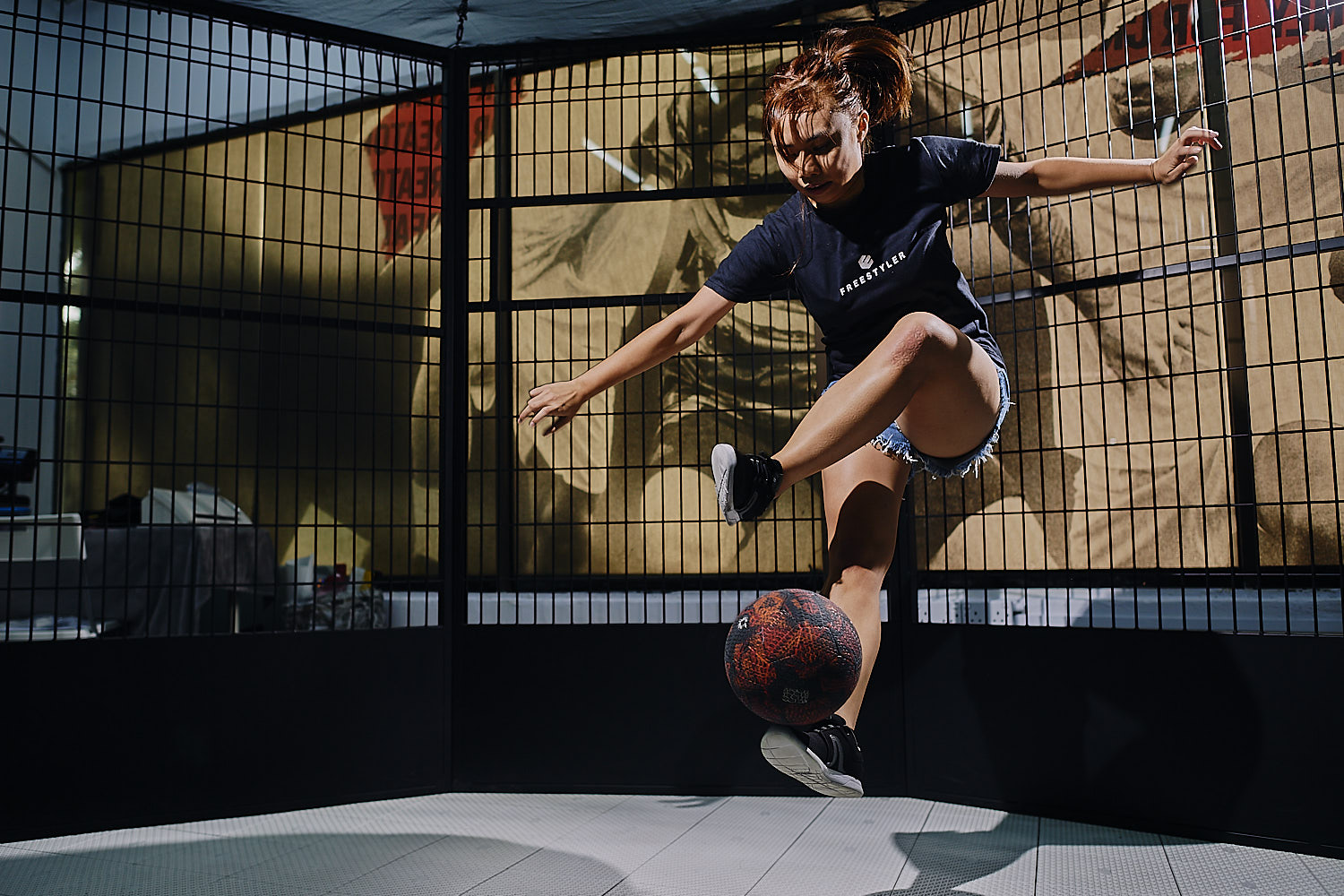 The childhood game developed into a passion for freestyle football and eventually led her to establish a freestyle football facility, Expy the Lab, in Queenstown Shopping Centre 15 years later. She describes freestyle football as a mix of sports and art. It features football juggling, dance, acrobatics and music.