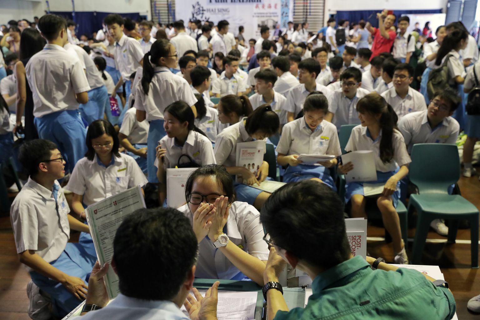 Students collecting their GCE O-level results at a school hall, on Jan 14, 2019.