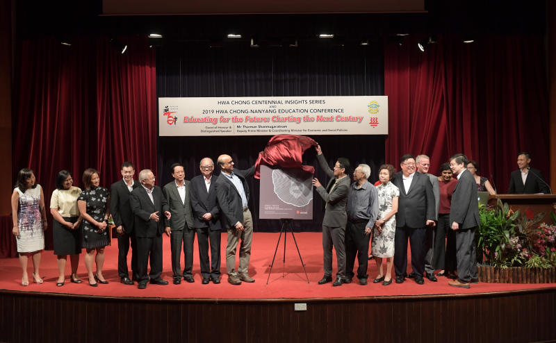 Deputy Prime Minister Tharman Shanmugaratnam and Hwa Chong Institution principal Pang Choon How launch the Hwa Chong Centennial Publication: A Tribute To The Hwa Chong Educator: 1919 - 2019 on Feb 15, 2019.