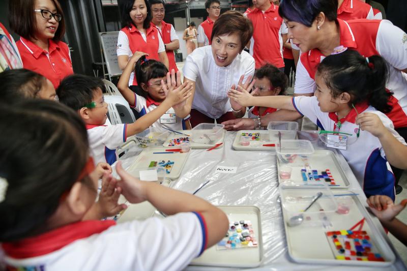 At a PCF Sparkletots event at Goodman Arts Centre, Minister for Manpower Josephine Teo joined over 60 children as they participated in enrichment programmes such as glass and clay art, and a music class.