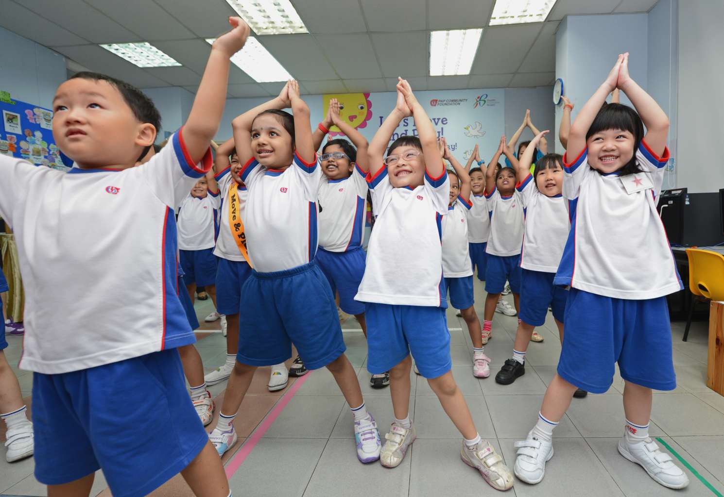 Pupils from Tanjong Pagar-Tiong Bahru PAP Community Foundation kindergarten exercising in class.