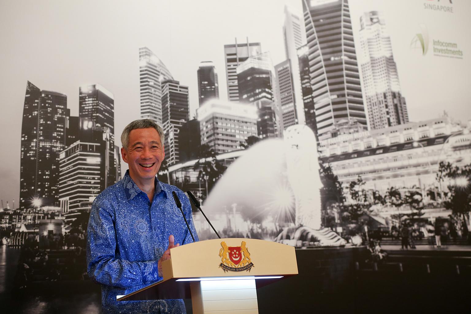 Prime Minister Lee Hsien Loong speaking at the launch of the Founders Forum Smart Nation Singapore on April 20, 2015.