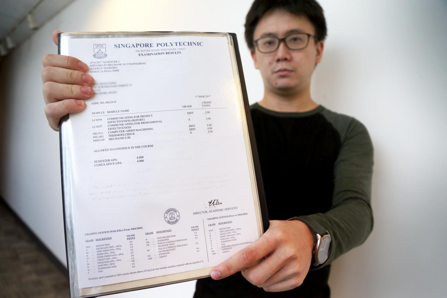 Mr Samuel Fong had struggled to complete his poly course over eight years and had a 2.4 cumulative GPA. But NTU looked at his other poly grades and he attended an admissions interview. He is now a first-year mechanical engineering student, with a GPA of more than 4.5 out of 5.