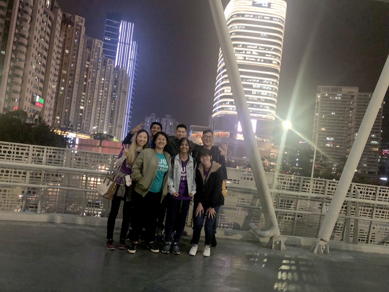 In Shenzhen for the NUS Overseas Colleges programme are students (front row, from left) Chen Kai Yue; Fatim Mohrini Ahmad Mohri; Rohini Subramanian; Helen Tan Meng Zhen; and (back row from left) Aaron Ramzeen and Lim Heng Guang; and programme manager Loh Weiren.
