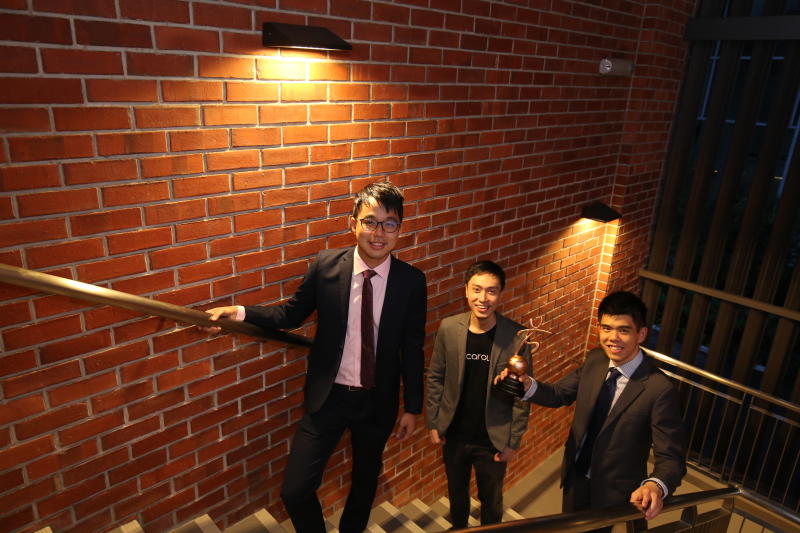E-commerce platform Carousell's co-founders (from left) Mr Marcus Tan Yi Wei, Mr Lucas Ngoo Cheng Han and Mr Quek Siu Rui, received the Outstanding Young Alumni Award as a team on Thursday (Nov 23)