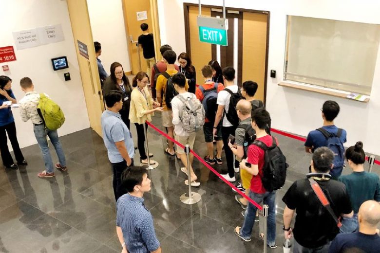 National University of Singapore students queueing for a campus townhall on April 25, 2019.