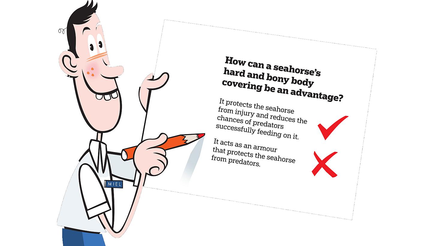 But the child who wrote "It acts as an armour that protects the seahorse from predators" was told that her answer was wrong.