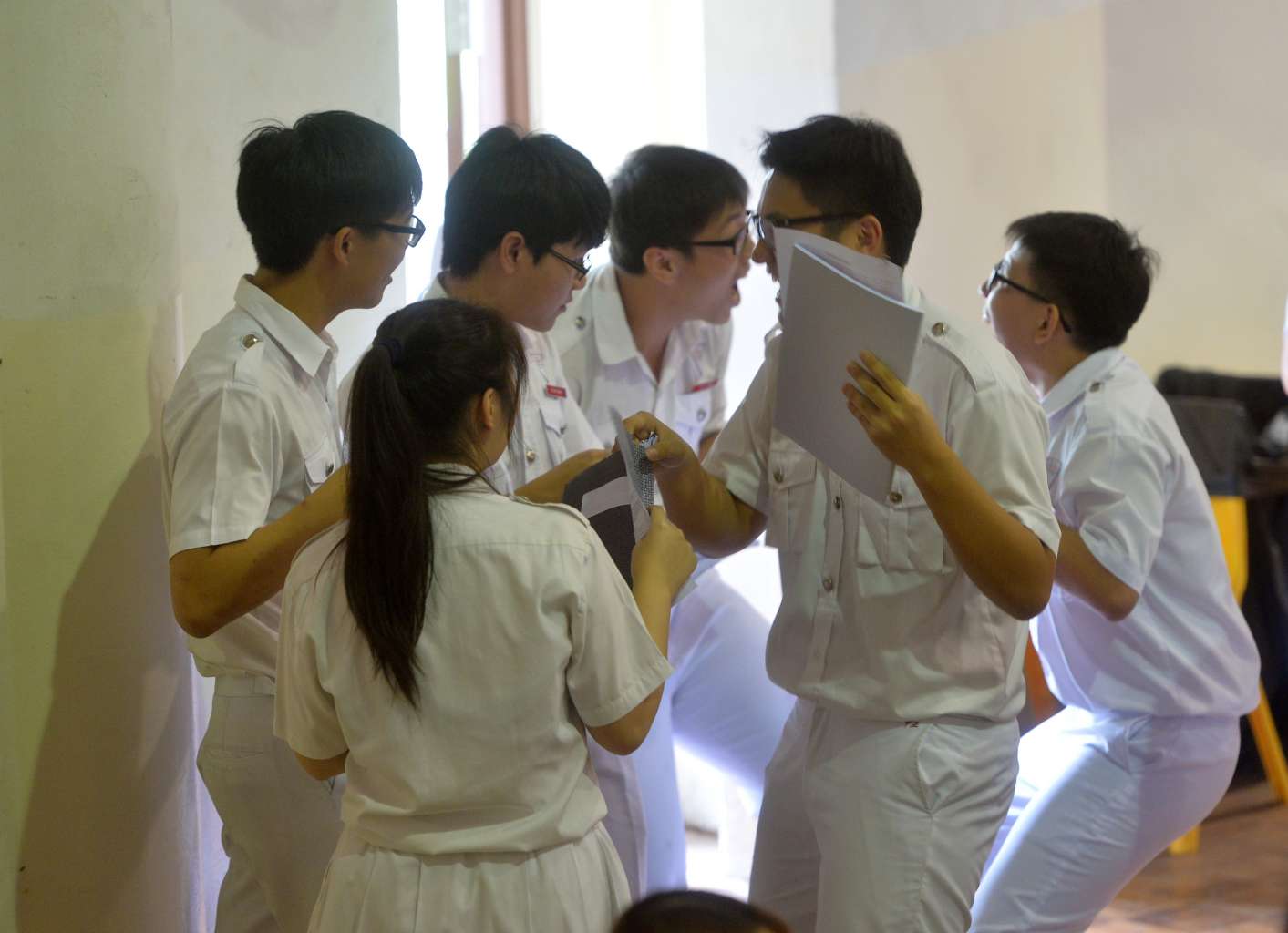Chung Cheng High School (Main) students gathering after the release of their O-level results.