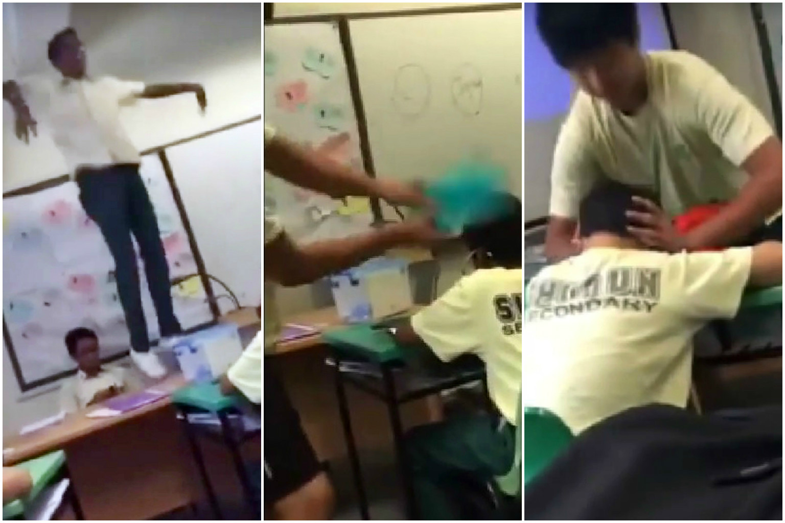 A 52-second video clip posted online showed a boy from the school hitting two other boys on their heads repeatedly. Another boy was seen dancing on the teacher's table in the background while the bullying went on.