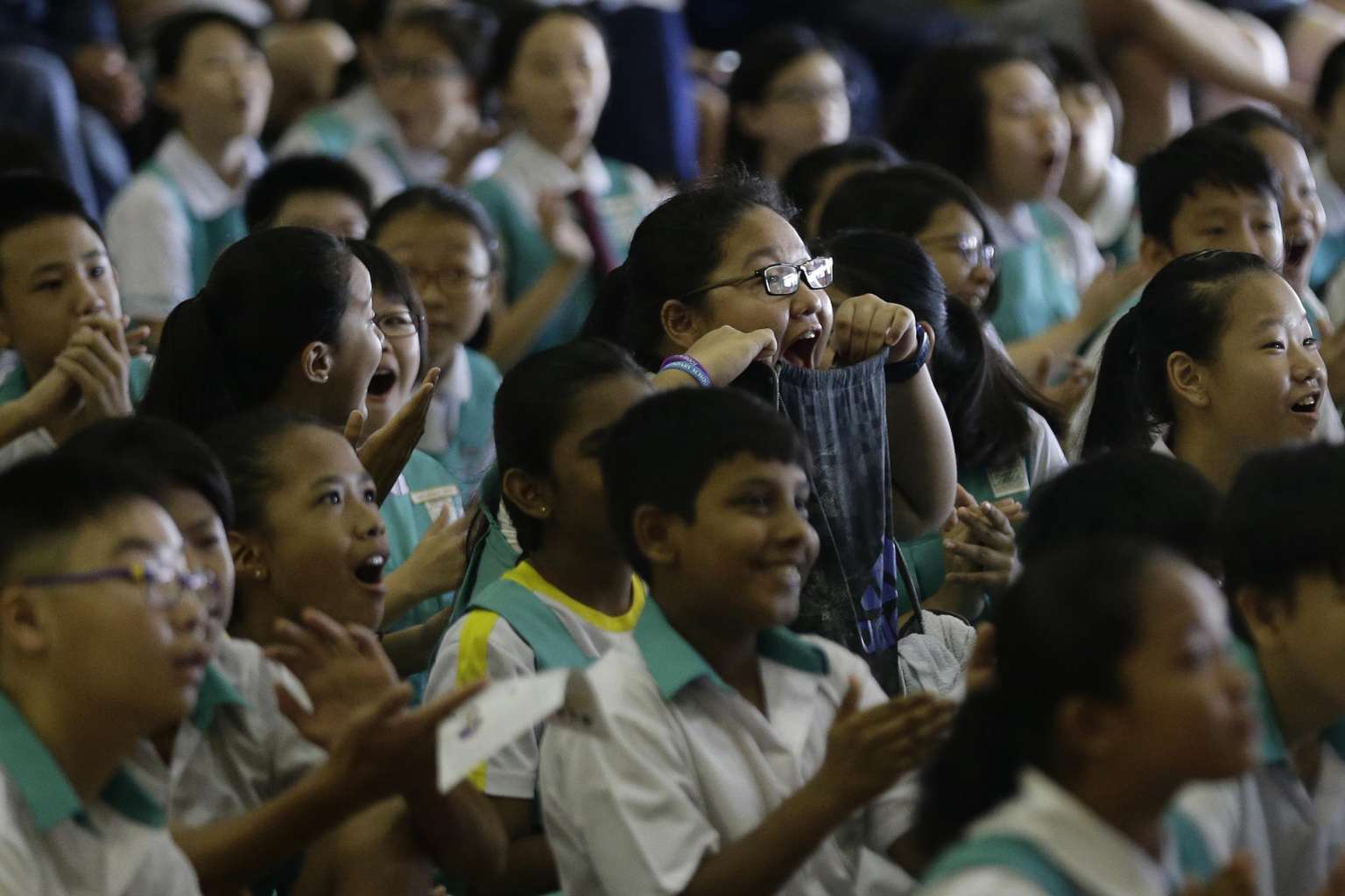 Pupils at Zhonghua Primary School reacting as the school’s overall PSLE results were announced on Nov 24, 2016.