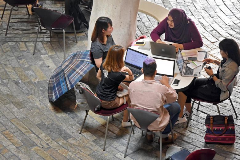 A photo taken in 2017 showing students from the Nanyang Technological University having a group discussion.
