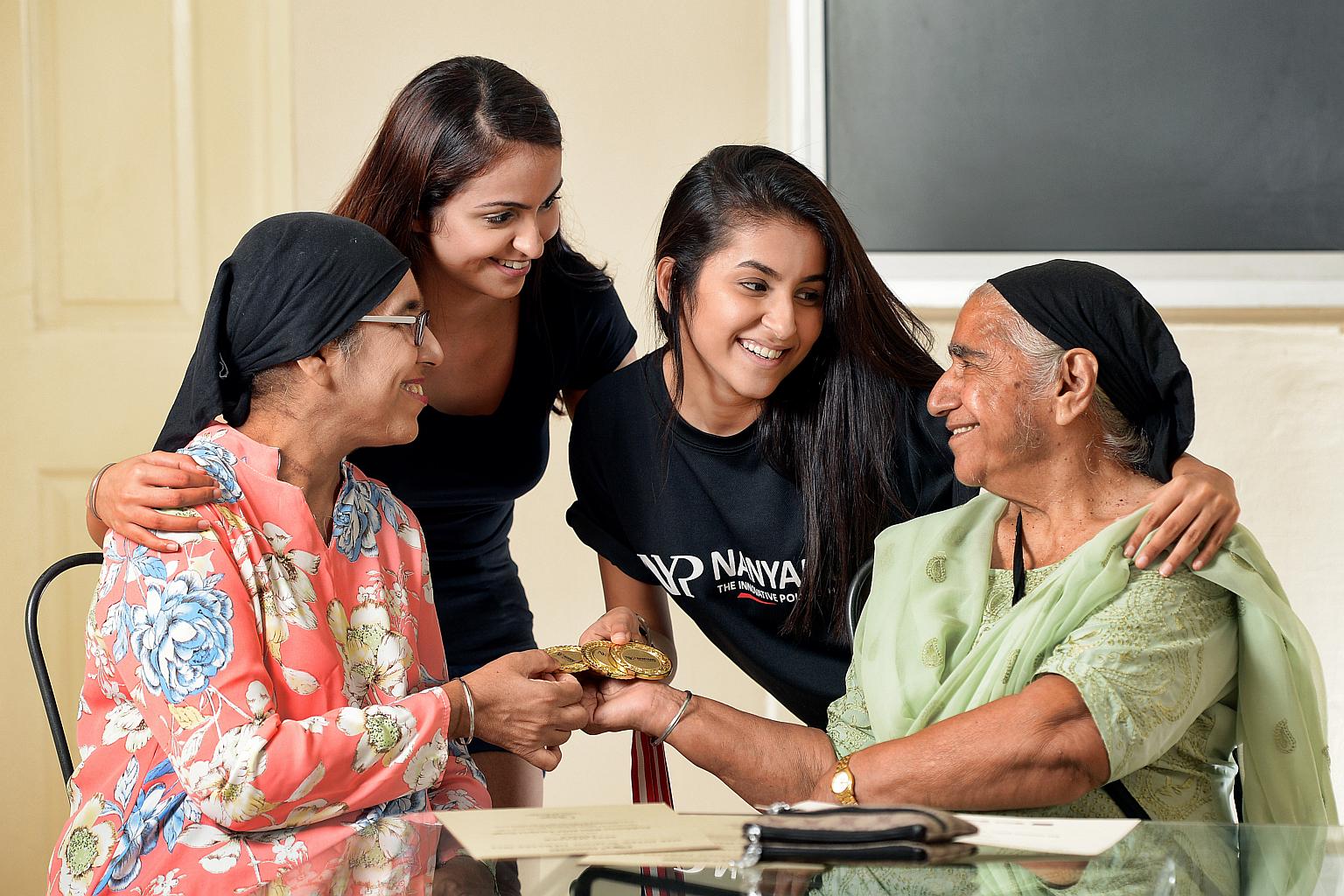 Ms Prabhmeet Kaur (second from right) from Nanyang Polytechnic's School of Business Management with (from left) her mother Sukhwant Kaur, sister Dalvin Kaur and grandmother Surinder Kaur.