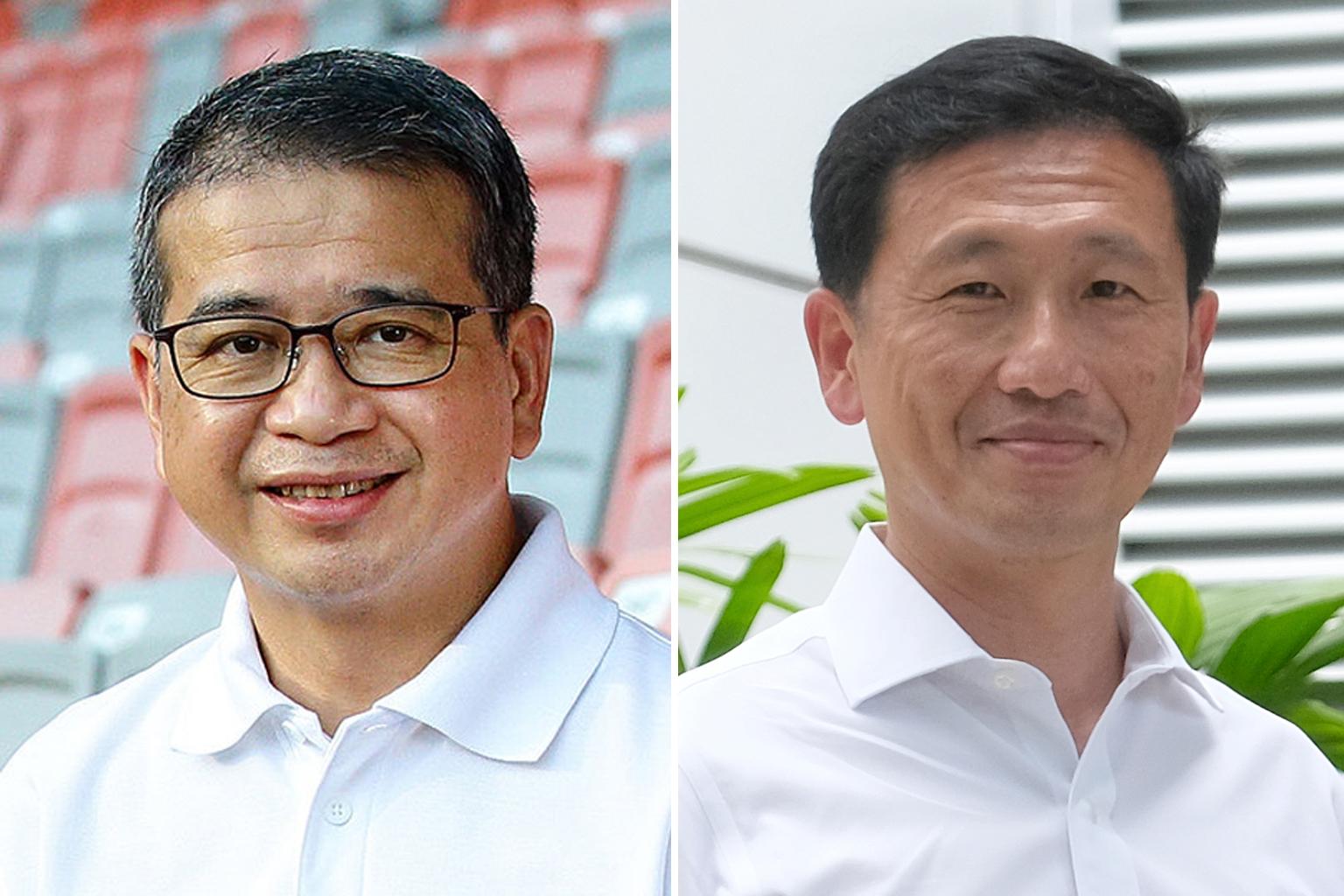 Minister for Culture, Community and Youth Edwin Tong (left) takes over the post of chairman of the Chinese Community Liaison Group from Transport Minister Ong Ye Kung.