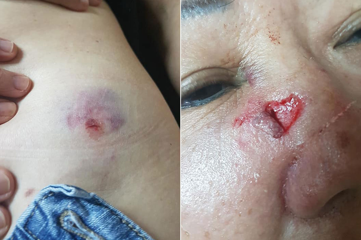 She sustained injuries to her hip, leg, arms and shoulders, and had a chunk of flesh cut off on her nose.