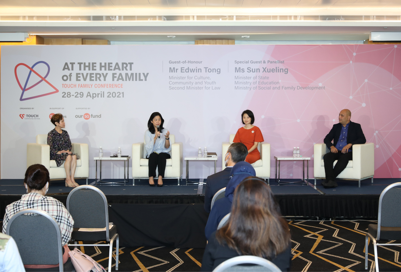 Minister of State for Social and Family Development Sun Xueling (second from right) with panelists at the Touch Family Conference, on April 29, 2021.