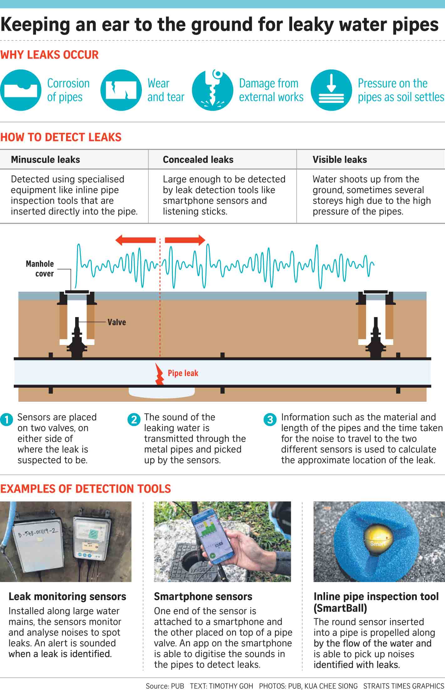 PUB said it is important to continually detect and repair leaks - even small ones - before they escalate, in order to conserve precious water.