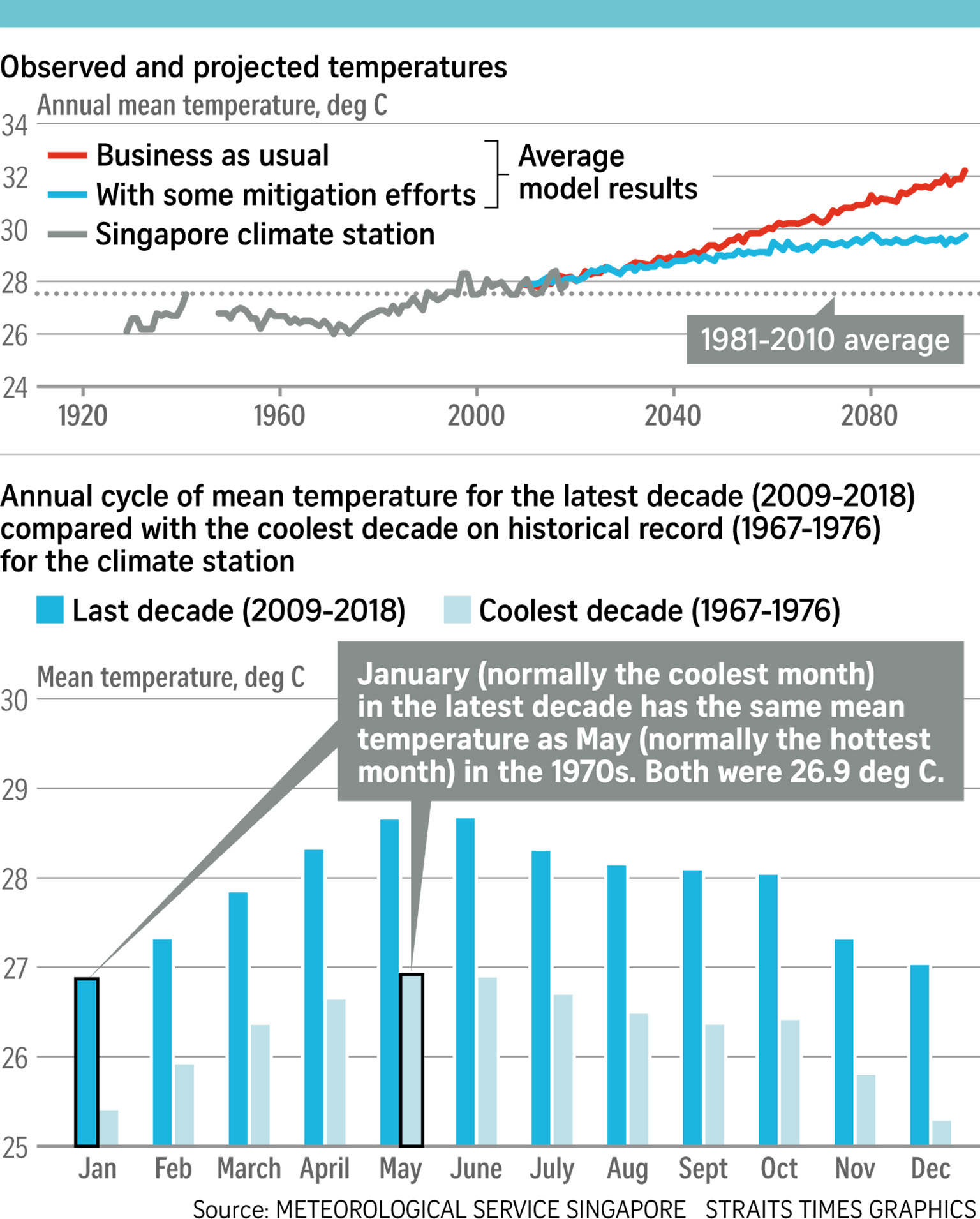 In a sign of the long-term ongoing warming in the country due to climate change and urbanisation, Singapore's top 10 warmest years have all occurred in the past 25 years, and the last 10 years (2009 to 2018) were the warmest ever.