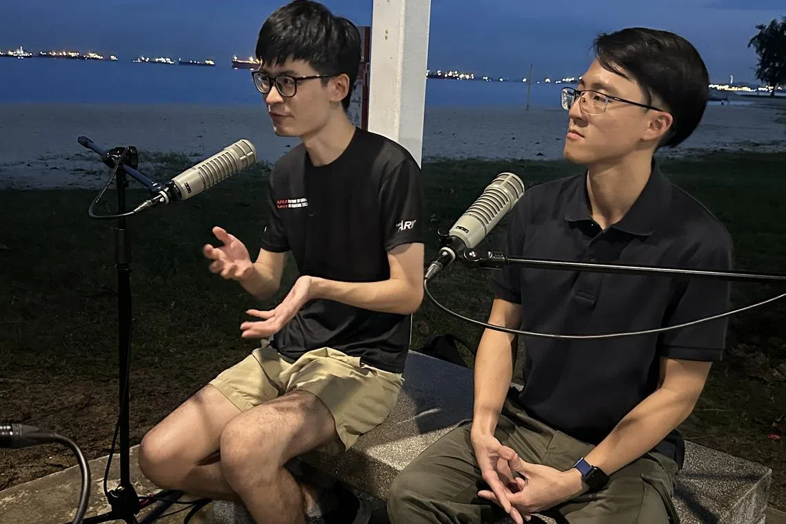 (From left) Mr Maximus Tan and Mr Crispus Tan - two youths sharing their views and recording at East Coast Park.