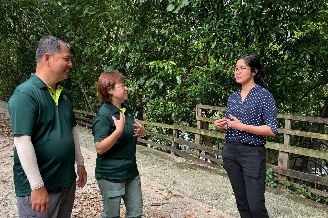 ST journalist Ang Qing takes a walk with representatives from the Nature Society (Singapore) - Veronica Foo and Tan Gim Cheong.