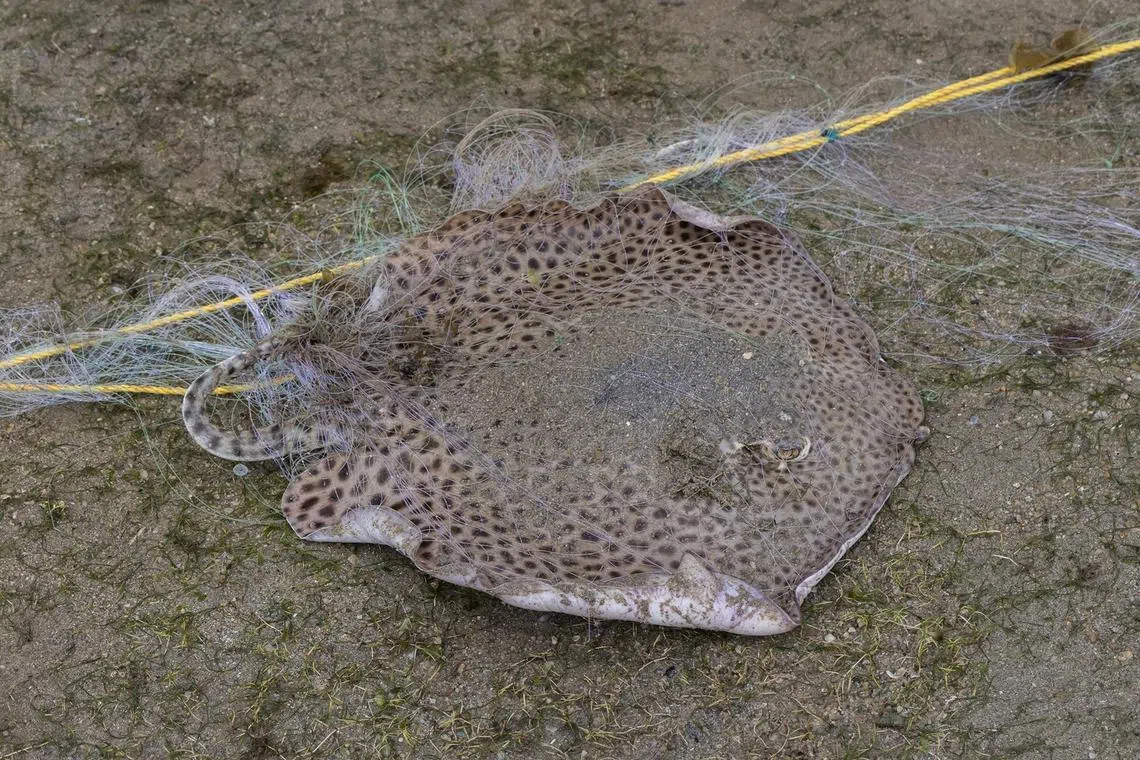 A ray, possibly a honeycomb whipray, was found dead in a 300m gill net.