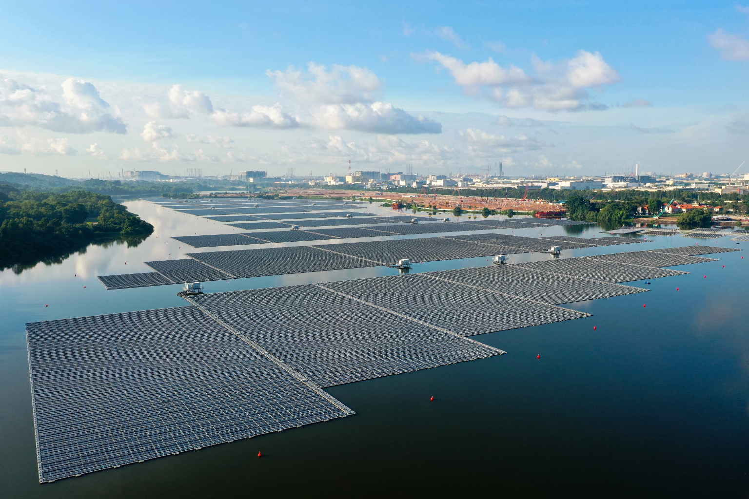 The Sembcorp Tengeh floating solar farm is one of the world's largest inland floating solar photovoltaic systems.