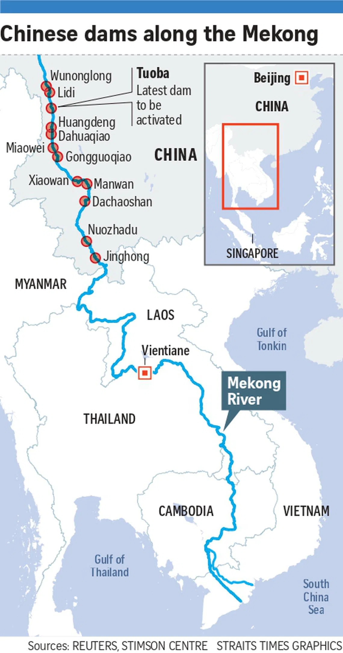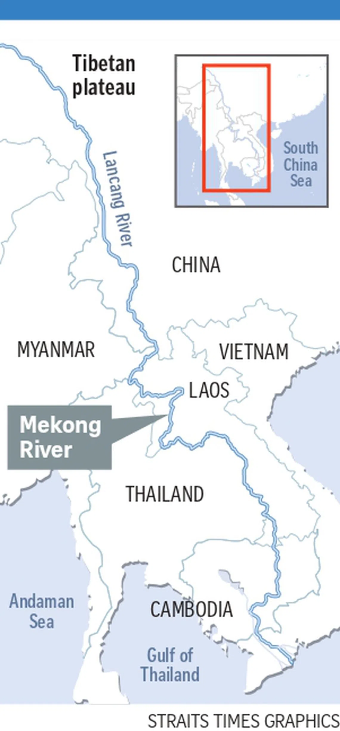 The 4,900 km Mekong, which originates in the Tibetan Plateau, is one of the world’s longest rivers, running through China – where it is called the Lancang – as well as Myanmar, Laos, Thailand, Cambodia and Vietnam.