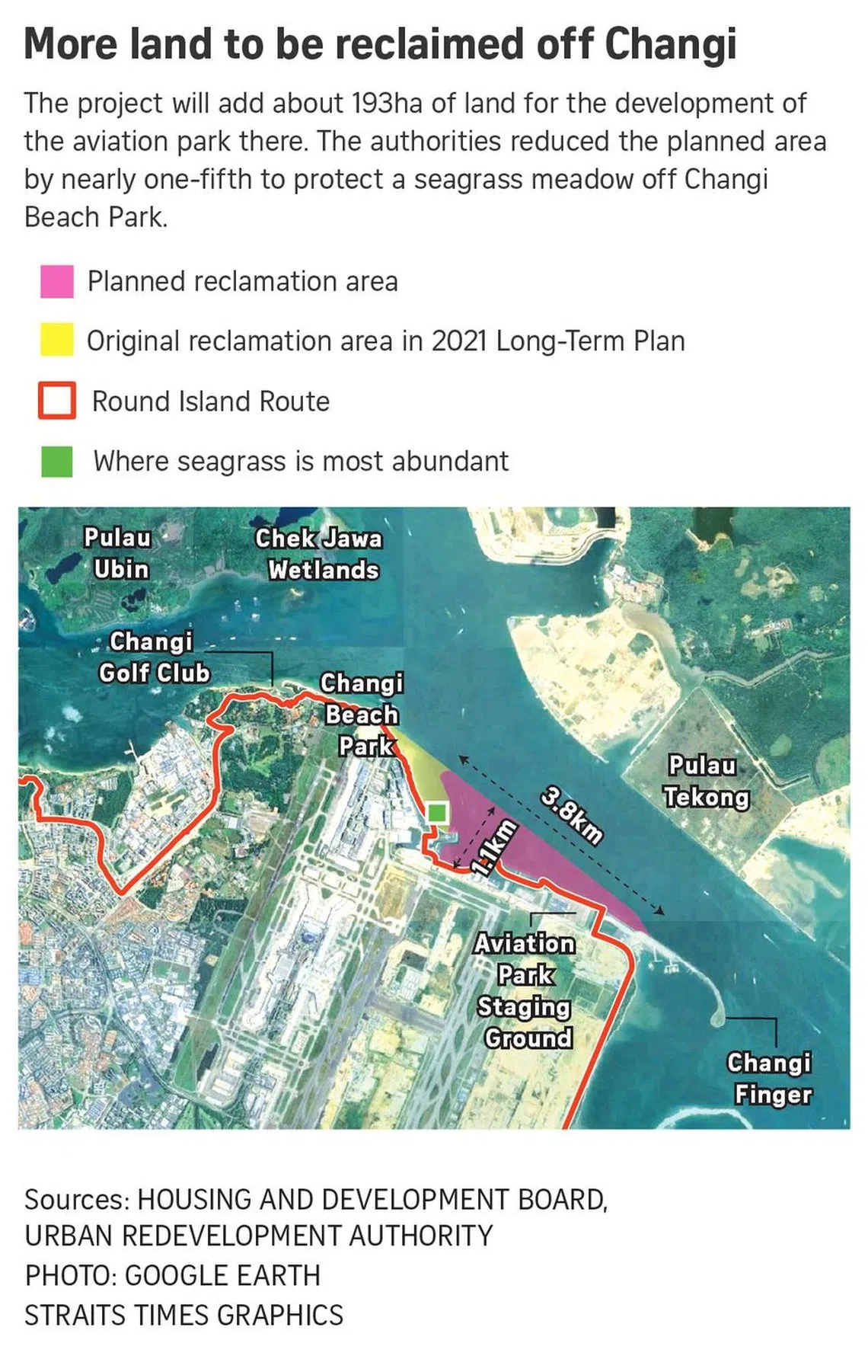 ST reported that about 193ha of land off Changi will be reclaimed, roughly twice the size of Gardens by the Bay.