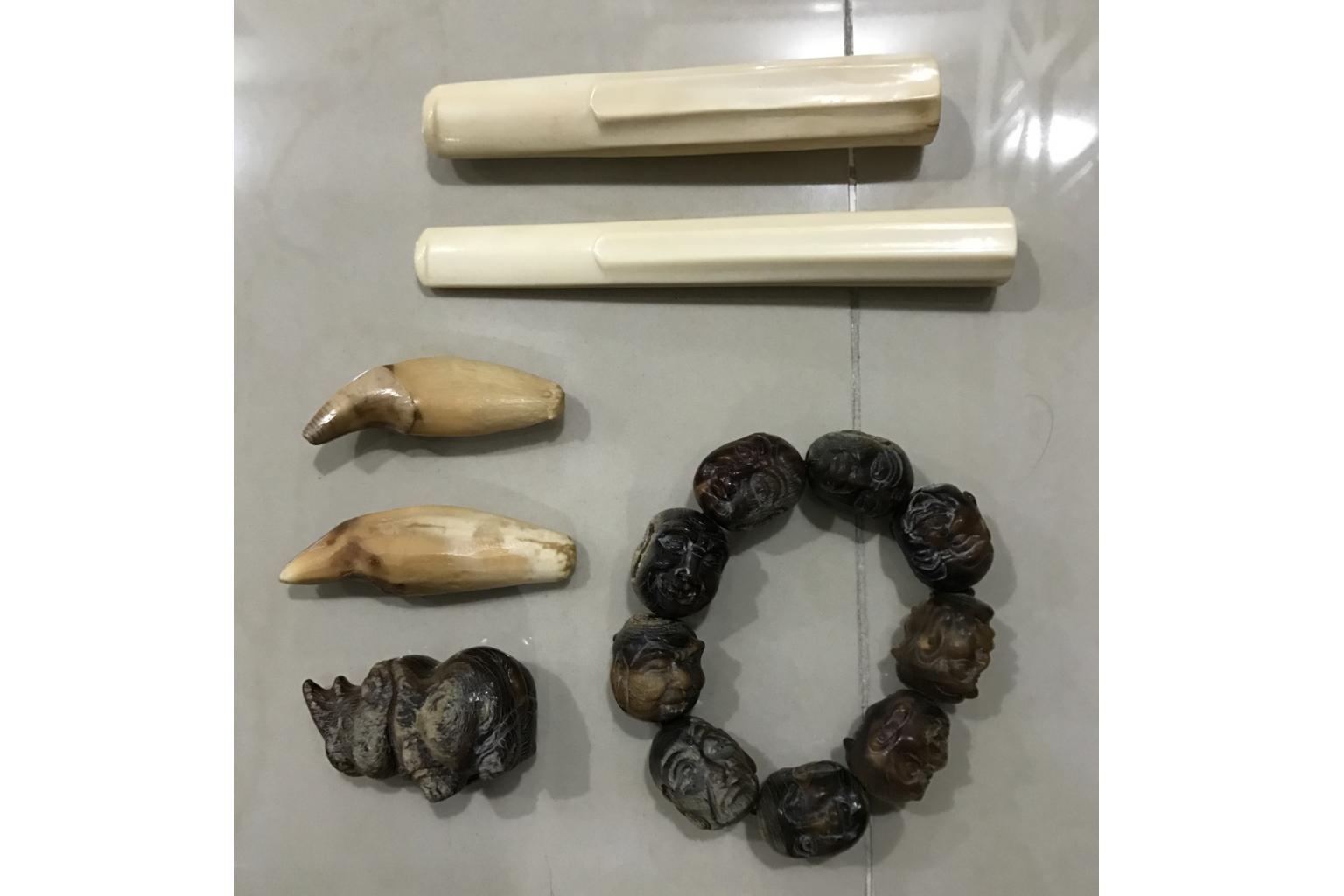A 57-year-old man was caught attempting to sell one Rhino horn bracelet, one Rhino horn figurine and two black bear teeth. Two ivory cigarette holders were also uncovered in his flat.