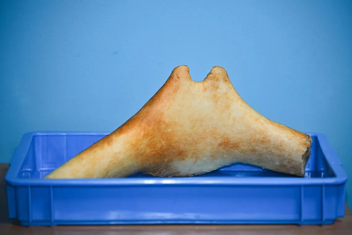 A cleaned and degreased hyoid bone from the baleen whale carcass seen during a visit to the Singapore Salvage Engineers' shipyard in Tuas on Sept 26.