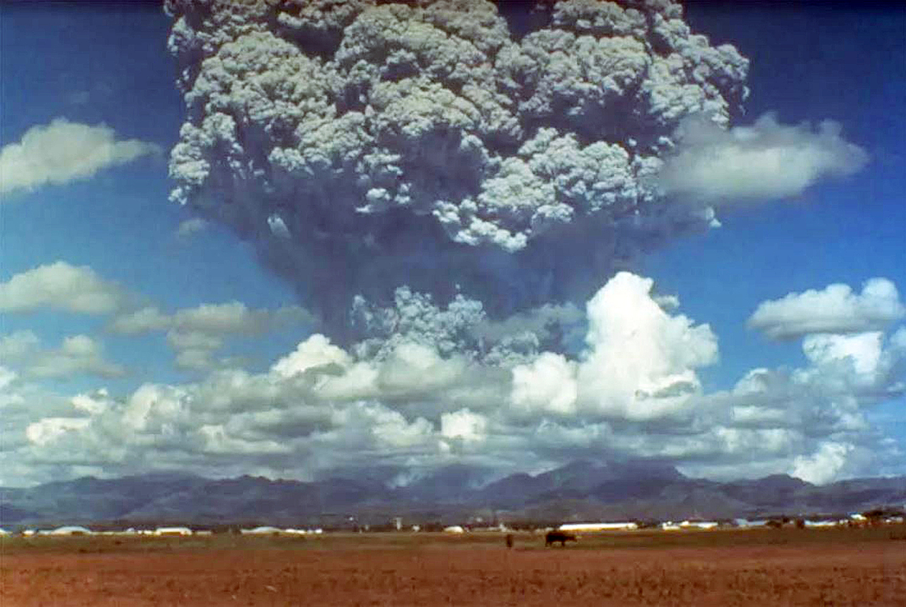 A massive cloud of steam and ash coming out of Mount Pinatubo in the Philippines on June 12, 1991.