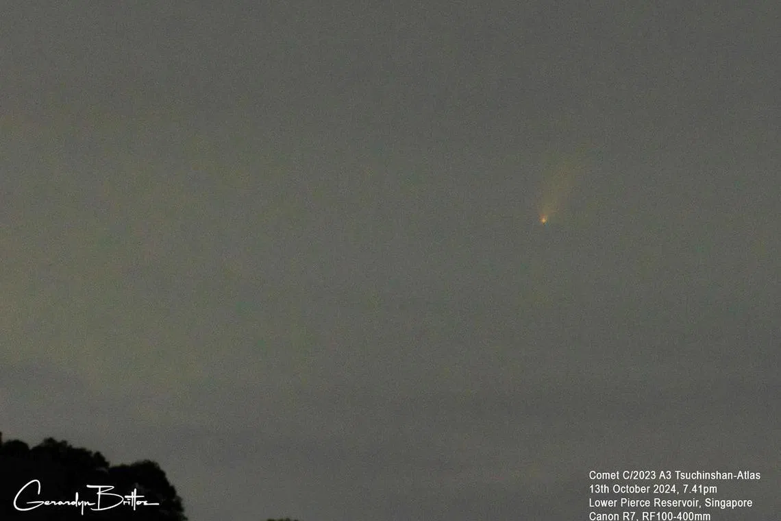 Ms Gerardyn Brittos, founder of Stargazing Singapore, told The Straits Times that she was surprised to see the comet show up on camera despite the cloudy evening skies on Oct 13.