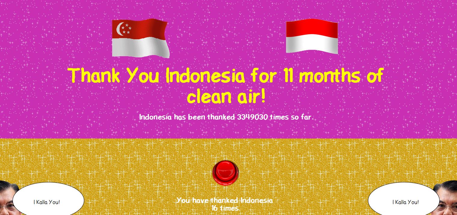 There have also been light-hearted attempts to poke fun at the current situation. A website named "Thank You Indonesia for 11 months of clean air" was recently set up, which referenced the unpopular comments made by Indonesia Vice-President Jusuf Kalla.