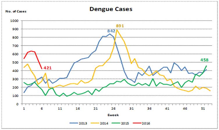 SINGAPORE - The total number of dengue cases fell further to 421 in the week from Feb 7 to 13, according to the latest figures released by the National Environment Agency (NEA).